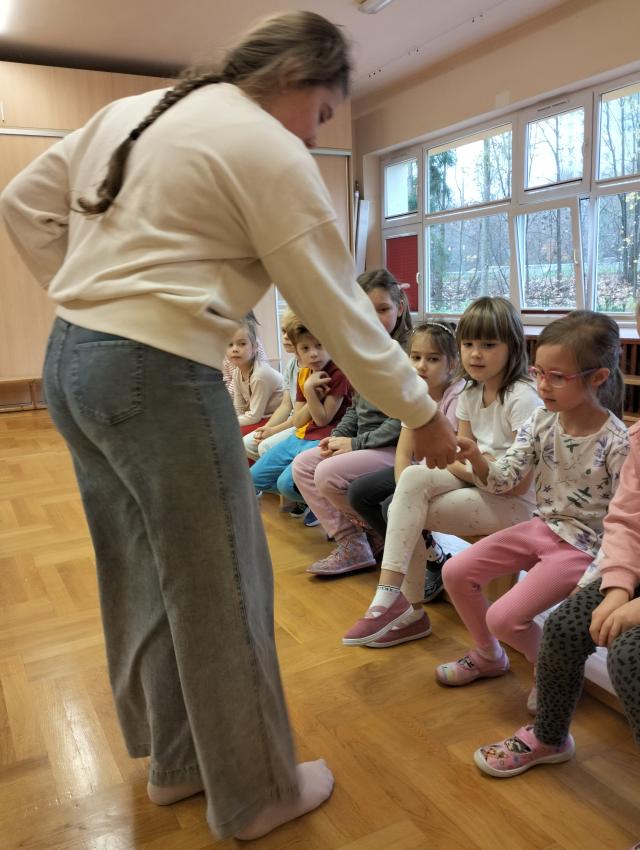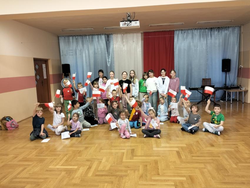 W dniu 3.11 (poniedziałek) odwiedziła  nasze przedszkole grupa dzieci z klasy 5. Uczniowie przybliżyli grupie starszaków najważniejsze wiadomości dot. Polski. Dzieci poznały najważniejsze symbole narodowe, legendy polskie, a na koniec wszyscy odśpiewali hymn Polski.