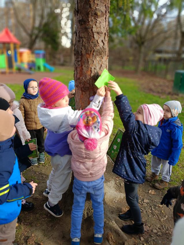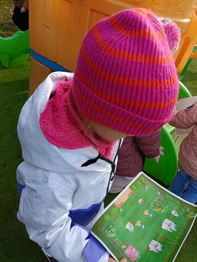 W pewien listopadowy dzień przedszkolaki z Żółwików wybrały się do ogródka na poszukiwanie skarbu. Na dzieci czekało 8 zadań i zagadek ukrytych w różnych punktach naszego ogródka. Po wykonaniu każdego zadania przedszkolaki otrzymywały elementy układanki, która pokazała gdzie ukryty jest skarb.