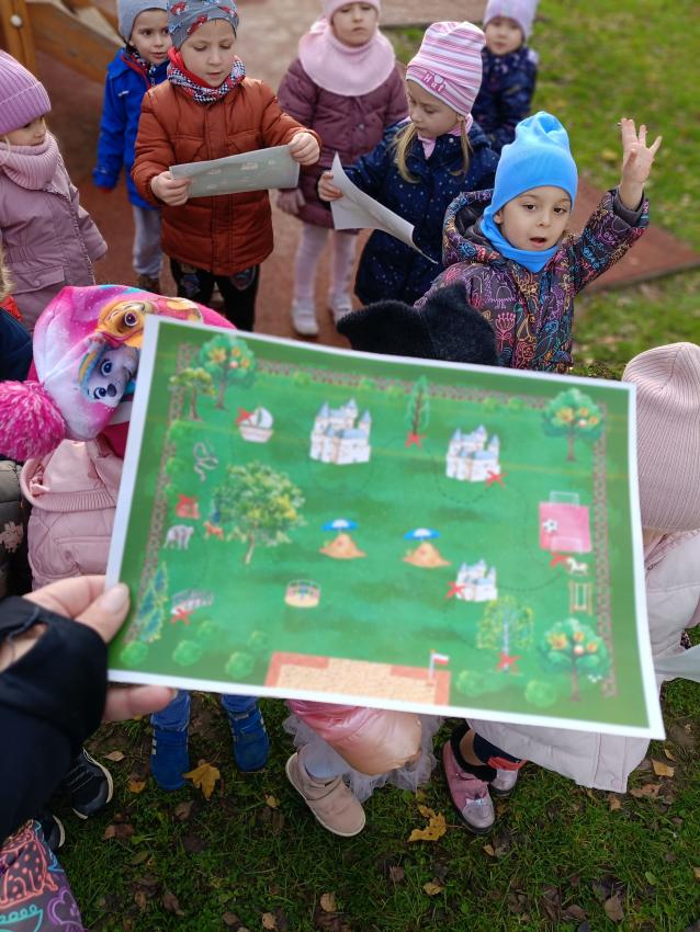 W pewien listopadowy dzień przedszkolaki z Żółwików wybrały się do ogródka na poszukiwanie skarbu. Na dzieci czekało 8 zadań i zagadek ukrytych w różnych punktach naszego ogródka. Po wykonaniu każdego zadania przedszkolaki otrzymywały elementy układanki, która pokazała gdzie ukryty jest skarb.